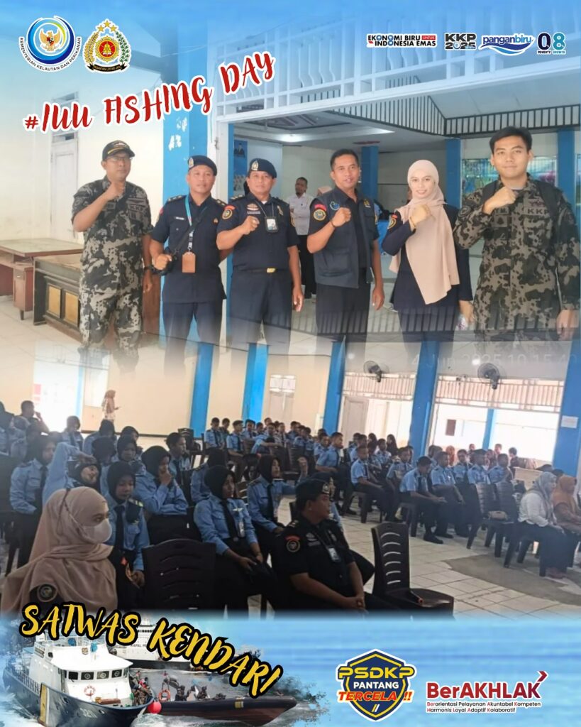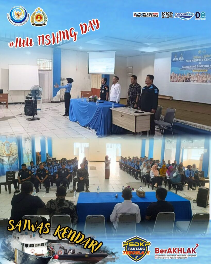 Dalam Rangka Memperingati IUU FISHING DAY, Pangkalan PSDKP Bitung melaksanakan kegiatan “PSDKP MENGAJAR” di Kota Kendari sebagai bentuk Sinergi dan Kolaborasi Memerangi IUU Fishing Untuk Mewujudkan Ekonomi Biru.