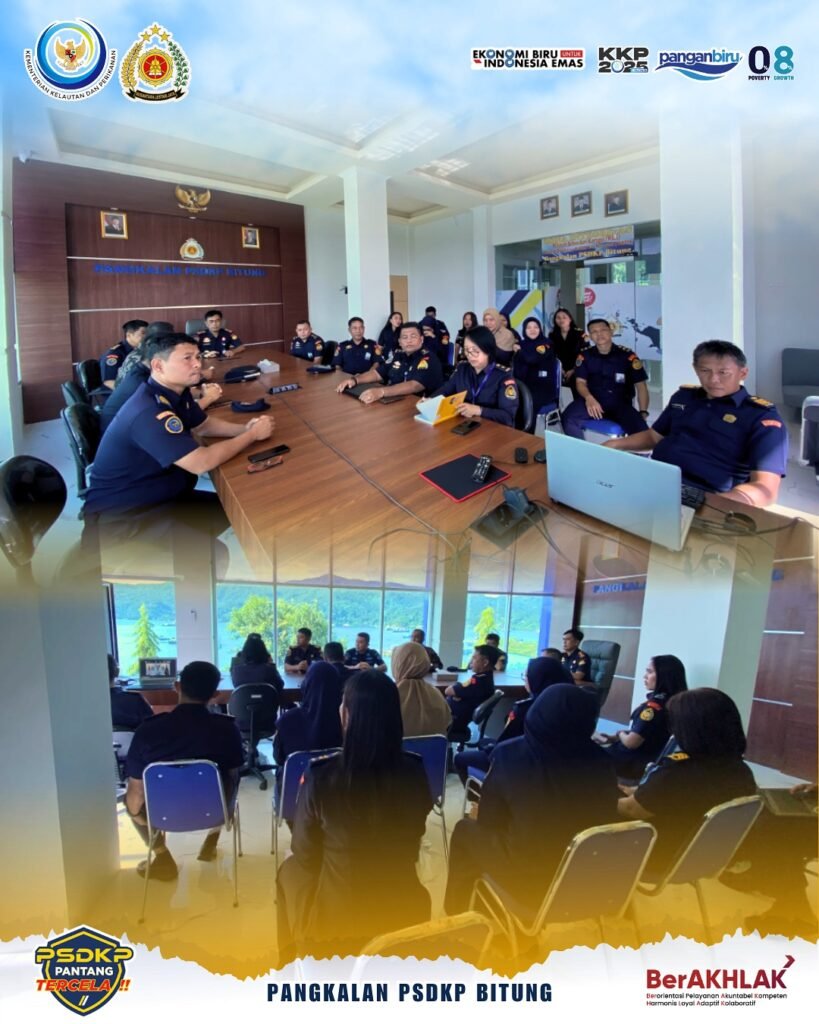 Seluruh Pegawai Pangkalan PSDKP Bitung mengikuti Apel Lingkup Ditjen PSDKP secara Daring di Ruang Rapat Selat Lembeh.