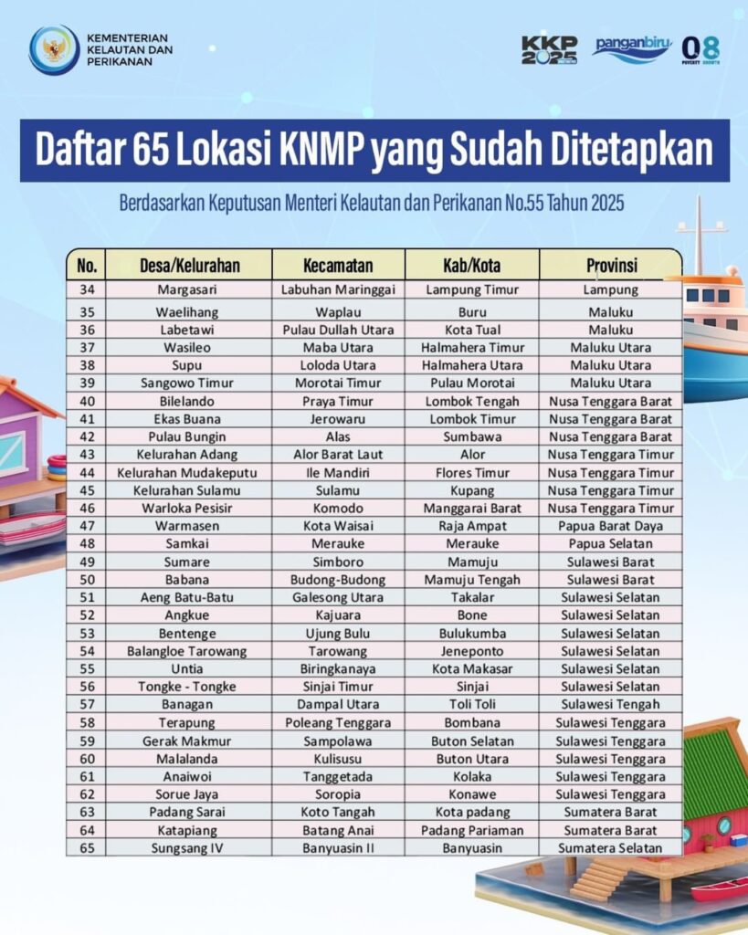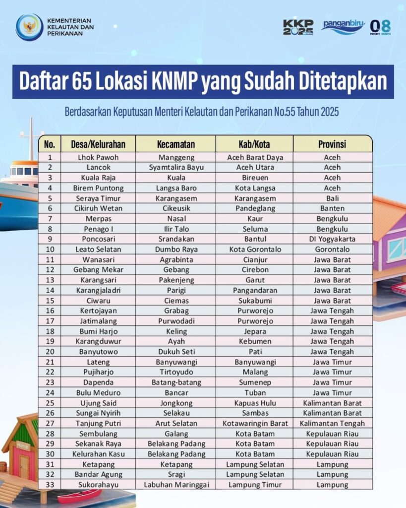 #SahabatBahari Kementerian Kelautan dan Perikanan telah menetapkan 65 lokasi tahap 1 pembangunan KNMP tahun 2025 melalui Kepmen KP No.55 Tahun 2025.