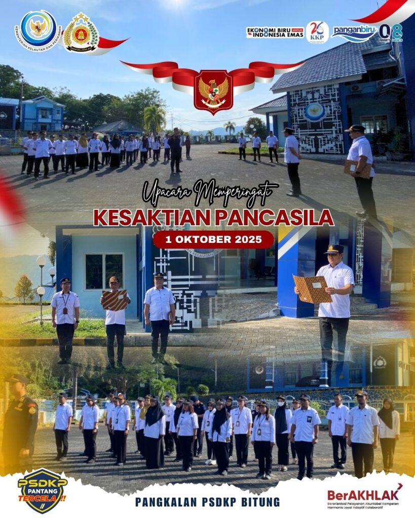 Pangkalan PSDKP Bitung melaksanakan Upacara Peringatan Hari Kesaktian Pancasila 1 Oktober 2025 dengan penuh khidmat. Momentum ini menjadi pengingat akan pentingnya meneguhkan nilai-nilai Pancasila sebagai pedoman hidup bangsa, sekaligus semangat dalam menjaga persatuan dan kedaulatan negara