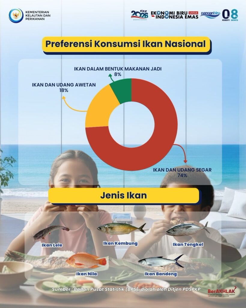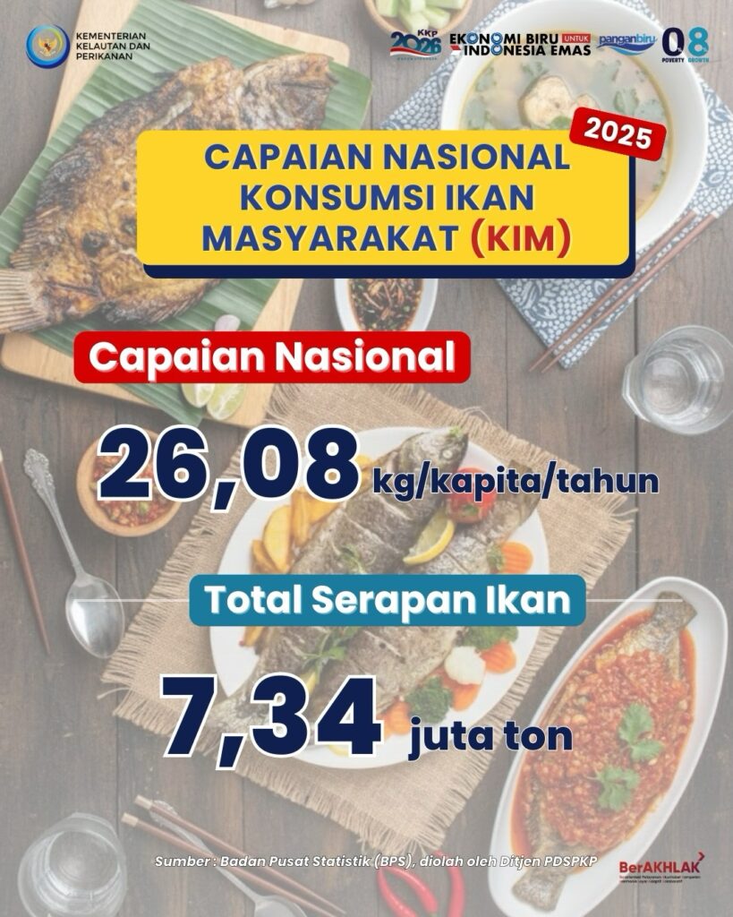 Tahun 2025, konsumsi ikan masyarakat Indonesia tembus 26,08 kg/kapita dan terus tumbuh. Ini artinya makin banyak masyarakat Indonesia yang makan ikan ![]()