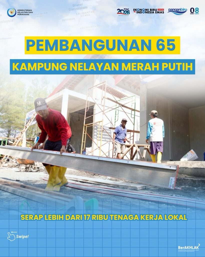 Dari pesisir untuk Indonesia! 65 Kampung Nelayan Merah Putih hadir, menyerap 17.550 tenaga kerja dan membuka harapan baru bagi ekonomi masyarakat pesisir. Semoga terus menjadi penyemangat untuk masyarakat pesisir agar selalu maju