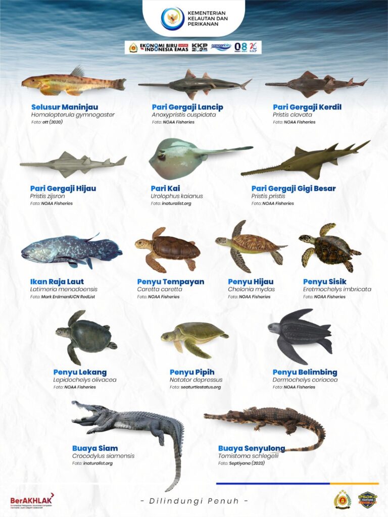 Apabila melihat atau menemukan jenis ikan yang dilindungi, segera laporkan kepada kami melalui Pangkalan PSDKP Bitung untuk dapat ditindaklanjuti sesuai ketentuan yang berlaku.