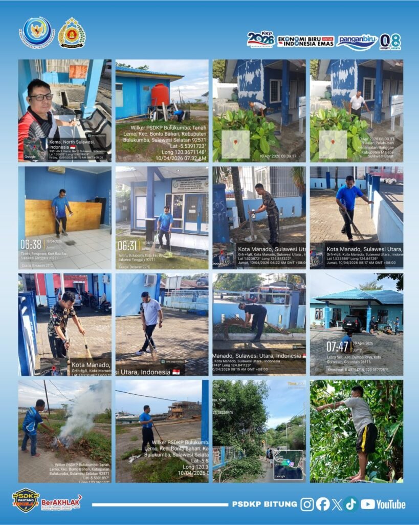 Pangkalan PSDKP Bitung telah melaksanakan kegiatan rutin mingguan PSDKP Jumat Bersih dalam rangka mendukung program ASRI (Aman, Sehat, Resik, Indah). Kegiatan ini bertujuan untuk mendorong pegawai menjaga lingkungan kerja yang bersih, tertib, dan nyaman, guna mendukung peningkatan kualitas pelayanan publik serta sebagai bentuk implementasi budaya kerja Ditjen PSDKP 5R (Ringkas, Rapi, Resik, Rawat, dan Rajin).
